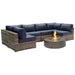 Outdoor 7 Piece Sectional Seating Group With Cushions And Fire Pit - Gray / Navy