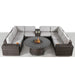 • Complete Outdoor Set: 12-piece group includes 2 modular sectionals, 1 sofa, fire pit, and 18 thick cushions.