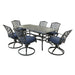 Rectangular 6 Person 68" Long Aluminum Dining Set With Cushions With Swivel Chairs - Navy Blue