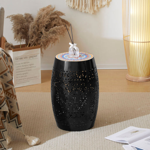 Vibrant Accent Table: Adds a splash of vividness to your space with a boho pattern ceramic tile top and unique color iron frame. Functional Art: P...
