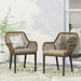 Modern Wicker Dining Club Chair With Water Resistant Cushions - Brown / Beige