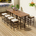 10 Piece Outdoor Acacia Wood Bar Height Table And 8 Stools With Cushions, Garden Wicker Dining Table, Foldable Tabletop, High Dining Bistro Set, All-Weather Patio Furniture - Brown