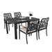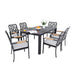 5 Pieces Outdoor Patio Aluminum Furniture Set, Rectangular Table With Umbrella Hole - Bourbon Brown