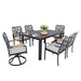 7 Pieces Outdoor Patio Furniture Set, 4 Dining Chairs & 2 Swivel Rockers Sunbrella Fabric, Rectangular Table With Umbrella Hole - Bourbon Brown
