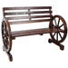 Rustic Country 2 Person Wooden Wagon Wheel Bench With Slatted Seat And Backrest - Brown