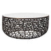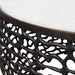This Striking Table Boasts A White Marble Top With Subtle Veining, Creating A Luxurious Contrast With The Warm, Dark Finish Of Its Intricately Patterned Cast Aluminum Base. Due To The Nature Of Natural Stone, Every Piece Will Vary Slightly Ensuring Yours Is Unique. Suitable For Both Indoor And Outdoor Use.