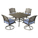 Square 4 Person 43.19" Long Aluminum Dining Set With Navy Blue Cushions, Swivel And Rocking Chairs - Antique Navy Blue
