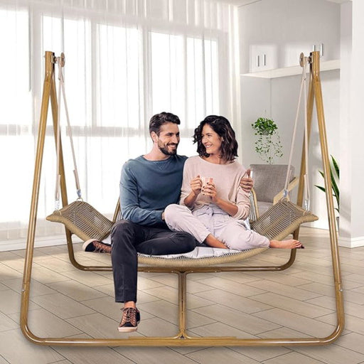 Fashion Design-The alloy frame with a wood grain pattern, combined with an elegant hanging chair design, and the wrapping of condensed silk rope an...