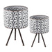 Metal Planter Stand, Round Galvanized Farmhouse Planter (Set of 2) - Gray