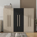 This wardrobe offers two stylish color options: white + natural wood and black + natural wood. The white version has six doors and four drawers, with a hanging rail for scarves and space for coats. The black version features six doors, two drawers, and three hanging rails. Each section supports up to 15 kg for safe storage. Its modern design fits perfectly in any contemporary bedroom.
