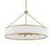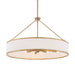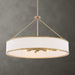 Narrow Hardback White Linen Fabric Hanging Shade With A Heavy Textured Soft Gold Finish. 8-40 Watt Max, Candelabra Sockets. Bulbs Not Included. Supplied With 15' Wire, 3-12" Stems,and 1-6" Stem For Adjustable Installation