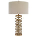 Layered Metal Rings Finished In A Heavily Antiqued Silver Champagne. The Round Hardback Drum Shade Is An Oatmeal Linen Fabric With Light Natural Slubbing.