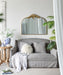 • Regal Charm: Decorative mirror with a refined gold finish and a large arched frame adorned at the head.