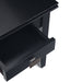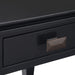 - Features 1 functional drawer with metal drawer glides and rectangular antique bronze handles.