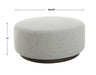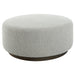 This Plush Ottoman Is Covered In A Casual Ivory And Warm Gray Boucle Fabric With A Natural Walnut Stained Wood Base. Perfect As A Coffee Table Topped With An Oversized Tray.