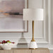 This Table Lamp Showcases A Fusion Of Refined White Marble And Plated Antique Brass. With Its Elegant Fluted-style Neck, This Lamp Adds Timeless Sophistication To Any Space. The Round Hardback Drum Shade Is A Casual White Linen Fabric.