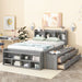 Full Bed With Bookcase Headboard, Under Bed Storage Drawers And Bed End Storage Case - Gray