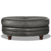 Belfast-Top Grain Leather Oval Ottoman - Gray