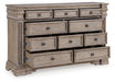 Discover something exceptional with this dresser. Its impressive silhouette offers a casual traditional aesthetic, embodied by classic-inspired columns and a relaxed grayish brown finish. Inset framed drawers of various sizes are casually cool and packed with ample storage possibilities.