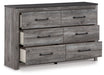 Alluring smoky gray hues create an ambiance that just feels right. This 6-drawer dresser has a charming wood-like appeal enriched by a two-tone, textured look. Light neutral shades contrasted by a dark charcoal finish bring a refined yet relaxed feel to contemporary decor and a sense of serenity to your space.