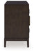 | Details | Made of wood, oak veneer and engineered wood, Dark, waxy brown oak finish, Metal accent bar pulls with brass-tone finish, 2 glass front cabinets with double doors, Cabinets with single adjustable shelves, Assembly required | |