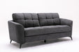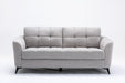- The Callie sofa provides world-class comfort and style with a tufted cushion design and metal legs. A great look for formal gatherings yet perfect for the family as well. The comfortable fabric will keep guests satisfied and looking elegant while the metal legs will blend luxuriously into a wide selection of rugs.