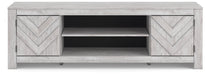 This TV stand embraces a classically charming aesthetic and repurposes it for modern living. Its whitewash replicated paint appeals to your love of vintage character, while the chic chevron pattern is effortlessly on trend. And with hidden storage behind the doors, your media accessories stay tucked away in style.