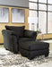 Talk about fine lines and great curves—that’s the beauty of this chair and ottoman. Made to suit your appreciation for clean, contemporary style, this fashion statement is complete with a striking flared frame, comfy pillow top armrests, tapered feet on the ottoman and an ultra-soft upholstery that holds up to everyday living.