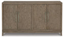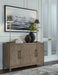 You want your dining room to reflect your refined sensibilities while remaining forward-thinking in design. The simple silhouette of this dining server opens the door to a dining room with the curated look and subtle flair you desire. The piece's elegant waxy gray finish gets an added touch of luxury with striking metal bar pulls in a light pewter tone. Two double door cabinets, each with an adjustable shelf, allow you to store in streamlined style.