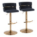 Cinch - Glam / Art Deco Adjustable Barstool With Swivel With Rounded T Footrest (Set of 2) - Gold / Black