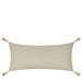 Featuring an understated yet elegant pattern in soft, neutral hues, this pillow infuses timeless beauty into any room. Four corner tassels add a touch of flair and movement to the look.