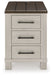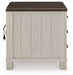 Make a farmhouse-inspired statement with this end table. Beautifully crafted to stand the test of time, the planked effect and clean two-tone finish lend a relaxing vintage feel. Spacious storage drawers with metal pulls double up on form and function. Plus, this end table's dual USB charging ports keep up with your high-tech lifestyle.