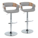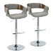 Elisa - Mid-Century Modern Adjustable Barstool With Swivel With Rounded T Footrest (Set of 2) - Chrome / Walnut / Gray