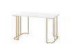 • Design and Structure: The Estie White & Gold Finish Writing Desk features a KD, rectangular design with an open base supported by sturdy metal square tubes, offering a sleek and modern appearance.