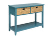 - Design Features: The Flavius Console Table boasts a rectangular shape, complemented by two basket-front drawers and an open bottom shelf for extra storage, supported by sturdy wooden straight legs.