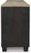 This TV stand with fireplace option is rustic, casual contemporary style simply done right. Its two-tone color scheme features a rich brushed black finish accented with a dusty grayish brown wood tone. With two glass-front cabinets (each with an adjustable shelf), an open cubby and a removable center shelf, it offers plenty of storage to house all of your electronic needs. Compatible with W100-12 electric LED fireplace insert (sold separately).