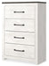 | Details | Made of engineered wood (MDF/particleboard), and decorative laminate, White rustic finish with replicated cedar grain, Rustic gray planked replicated oak grain with authentic touch, 4 smooth-gliding drawers with faux linen lining, Large scale dark colored handles, Safety is a top priority, clothing storage units are designed to meet the most current standard for stability, ASTM F 2057 (ASTM International), Drawers extend out to accommodate maximum access to drawer interior while maintaining safety, Assembly required | |