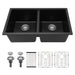 Kitchen Sink 33" X 19" Granite Composite Double Bowl Undermount Sink - Black