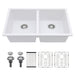 Kitchen Sink Double Bowl Granite Composite Undermount 33" X 19" - White