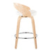 • Elegant Design: The Grotto Counter Stool by LumiSource features a curved low back and rounded legs, showcasing a sophisticated yet modern aesthetic. The combination of wood legs and a chrome metal footrest adds a touch of elegance to any dining area.