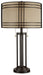 Add a touch of rustic industrial style to your decor with this eye-catching table lamp. Its drum shade and decorative metal frame bring an appealing touch to your home. A dark brown finish complements the shade's lighter neutral color, making this lamp ideal for enhancing casual urban spaces.