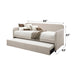 - Product Design: The Jagger Fog Fabric Daybed comes with a roll-out trundle and a slat system with 28 slats included, providing robust support for twin size mattresses. It features a fully padded design for enhanced comfort and style.