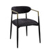 - Elegant Color Scheme: The side chair features a sophisticated dual-tone design with sleek black upholstery and legs. Gold accents on the armrests add a luxurious touch, making it a stylish addition to any dining area.
