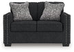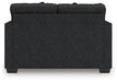 This stunning loveseat leaves a lasting impression. Its cozy cushions, chic coal-colored upholstery and striking nailhead trim are a perfect blend of comfort and contemporary design. And here’s the showstopper—ambient red, white and blue LED lighting along the loveseat's base. The look is simply wow.