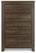 | Details | Made with engineered wood (MDF/particleboard/plywood) and decorative laminate for the right balance of affordability and durability, Vintage aged brown rough sawn finish over replicated oak grain, Pewter-tone hardware, 5 drawers, Safety is a top priority, clothing storage units are designed to meet the most current standard for stability, ASTM F 2057 (ASTM International), Drawers extend out to accommodate maximum access to drawer interior while maintaining safety, Assembly required | |