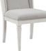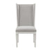 - Elegant Design: This side chair showcases a wooden backrest with a sleek finish, paired with a padded seat cushion upholstered in soft fabric, creating a sophisticated and comfortable aesthetic.