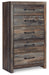 Details B211-46: Made of engineered wood (MDF/particleboard) and decorative laminate, Brown rustic finish with burnt orange and teal accents in a replicated wood grain with authentic touch, Large-scale hardware with dark finish, 5 smooth-gliding drawers, Drawer interiors are lined with a faux linen laminate for a clean, finished look, Includes tipover restraint device, Small Space Solution, Safety is a top priority, clothing storage units are designed to meet the most current standard for stability, ASTM F 2057 (ASTM International), Drawers extend out to accommodate maximum access to drawer interior while maintaining safety, B211-92: Made of engineered wood (MDF/particleboard) and decorative laminate, Brown rustic finish with burnt orange and teal accents in a replicated wood grain with authentic touch, 2 smooth-gliding drawers, Drawer interiors are lined with a faux linen laminate for a clean, finished look, Large-scale hardware with dark finish, 2 slim-profile USB-C charging stations, Power cord included; UL Listed, Small Space Solution, B211B1: Made of engineered wood (MDF/particleboard) and decorative laminate, Brown rustic finish with burnt orange and teal accents in a replicated wood grain with authentic touch, 6 smooth-gliding drawers, Drawers lined with faux linen laminate, Dark-tone industrial hardware, Mirror attaches to back of dresser, Assembly required, Includes tipover restraint device, B211B14: Includes headboard, footboard and rails, Made of engineered wood (MDF/particleboard) and decorative laminate, Brown rustic finish with burnt orange and teal accents in a replicated wood grain with authentic touch, 2 decorative sconce LED lights, each runs on 3AA batteries, 2 USB charging ports, Power cord included; UL Listed, Foundation/box spring required, sold separately, Mattress available, sold separately, Assembly required, Bed is compatible with an adjustable base,