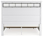 | Details | B844B4: Includes panel headboard, storage footboard, rails and roll slats, Footboard made with hardwood solids, MDF substrates and butcher block oak veneer, Headboard and rails made with hardwood solids and MDF substrates, White finish, Headboard with inset black metal barn sash, 2 drawers in footboard with fully finished interior, dovetail construction and ball-bearing side glides, Pulls with matte black finish, Bed does not require a foundation/box spring, Mattress available, sold separately, Assembly required, B844B1: Includes dresser and mirror, Made with hardwood solids, MDF substrates and butcher block oak veneer, Dresser with 2-tone finish (white finish; butcher block oak veneer with natural finish), Pulls with matte black finish, 10 spacious drawers with fully finished interiors (top drawers felt lined), dovetail construction and ball-bearing side glides , Drawers with inset picture fronts, Mirror attaches to back of dresser, B844-46: Made with hardwood solids, MDF substrates and butcher block oak veneer, 2-tone finish (white finish; butcher block oak veneer with natural finish), Pulls with matte black finish, 5 spacious drawers with fully finished interiors (top drawers felt lined), dovetail construction and ball-bearing side glides, Drawers with inset picture frame fronts, B844-93: Made with hardwood solids, MDF substrates and butcher block oak veneer, 2-tone finish (white finish; butcher block oak veneer with natural finish), Pulls with matte black finish, 3 spacious drawers with fully finished interiors (top drawers felt lined), dovetail construction and ball-bearing side glides, 110V power supply with dual USB charging ports, Power cord included; UL Listed, Drawers with inset picture frame fronts, | |