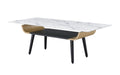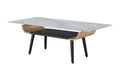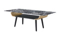 Landon - Coffee Table With Glass Marble Texture Top And Bent Wood Design