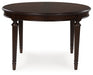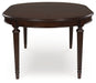 | Details | Made with hardwood solids, cherry veneer, cast resin components and engineered wood substrates, Cherry brown finish, Removable center leaf, Seats up to 6, Assembly required | |